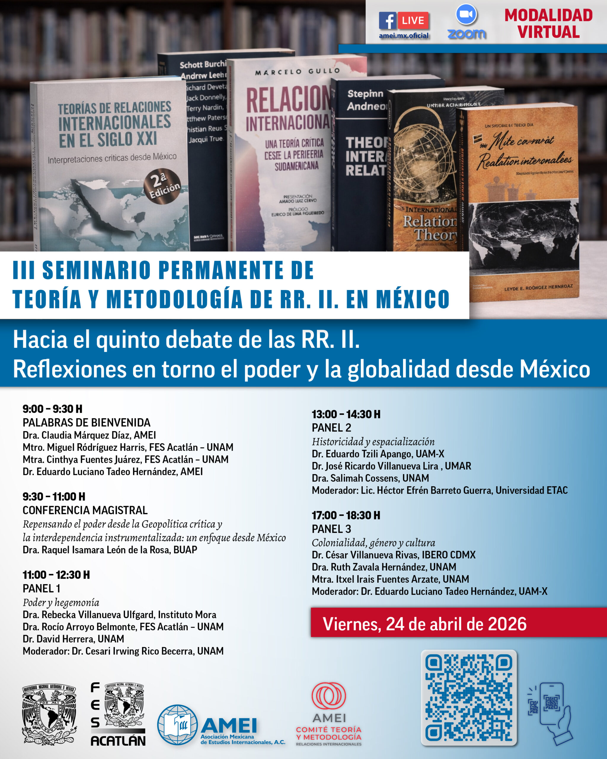 • Dr. José Ricardo Villanueva Lira (Universidad del Mar). “Más allá del canon: la tríada feminista–socialista–pacifista en los inicios de Relaciones Internacionales”.